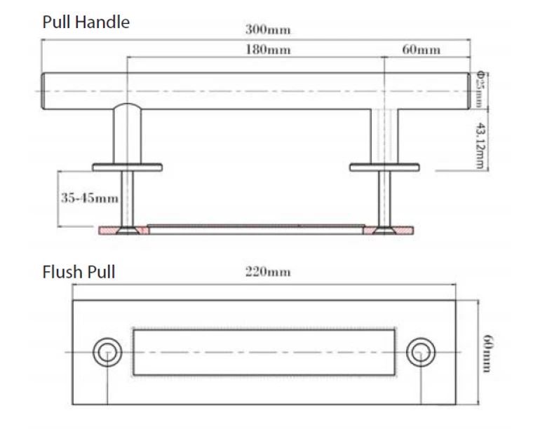 - Flush Pull: 220x60mm