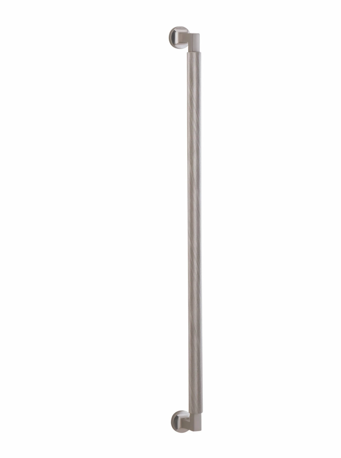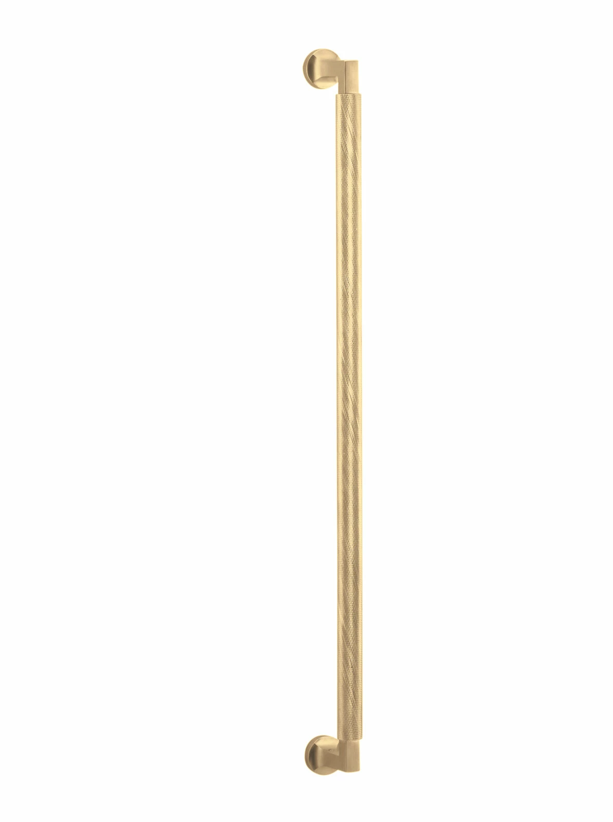 The Brunswick pulls features a modern bar design with knurled detailing. Crafted from solid brass, the pulls come in two sizes to fit a variety of door styles and adds an industrial edge to any interior.