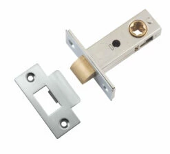 Double sprung (hard sprung) to suit heavy unsprung door furniture. Split cam tube latches featuring brass face plate and striker. Available in 3 different size backsets.