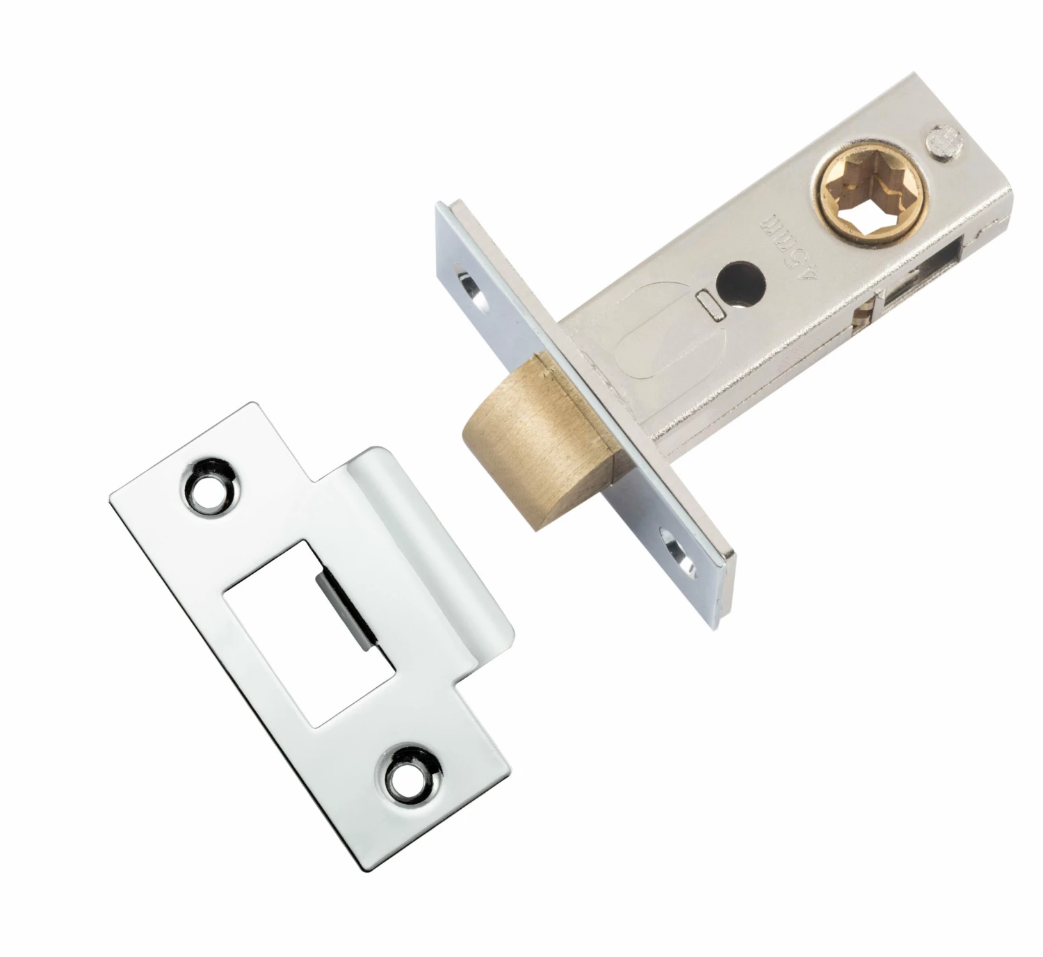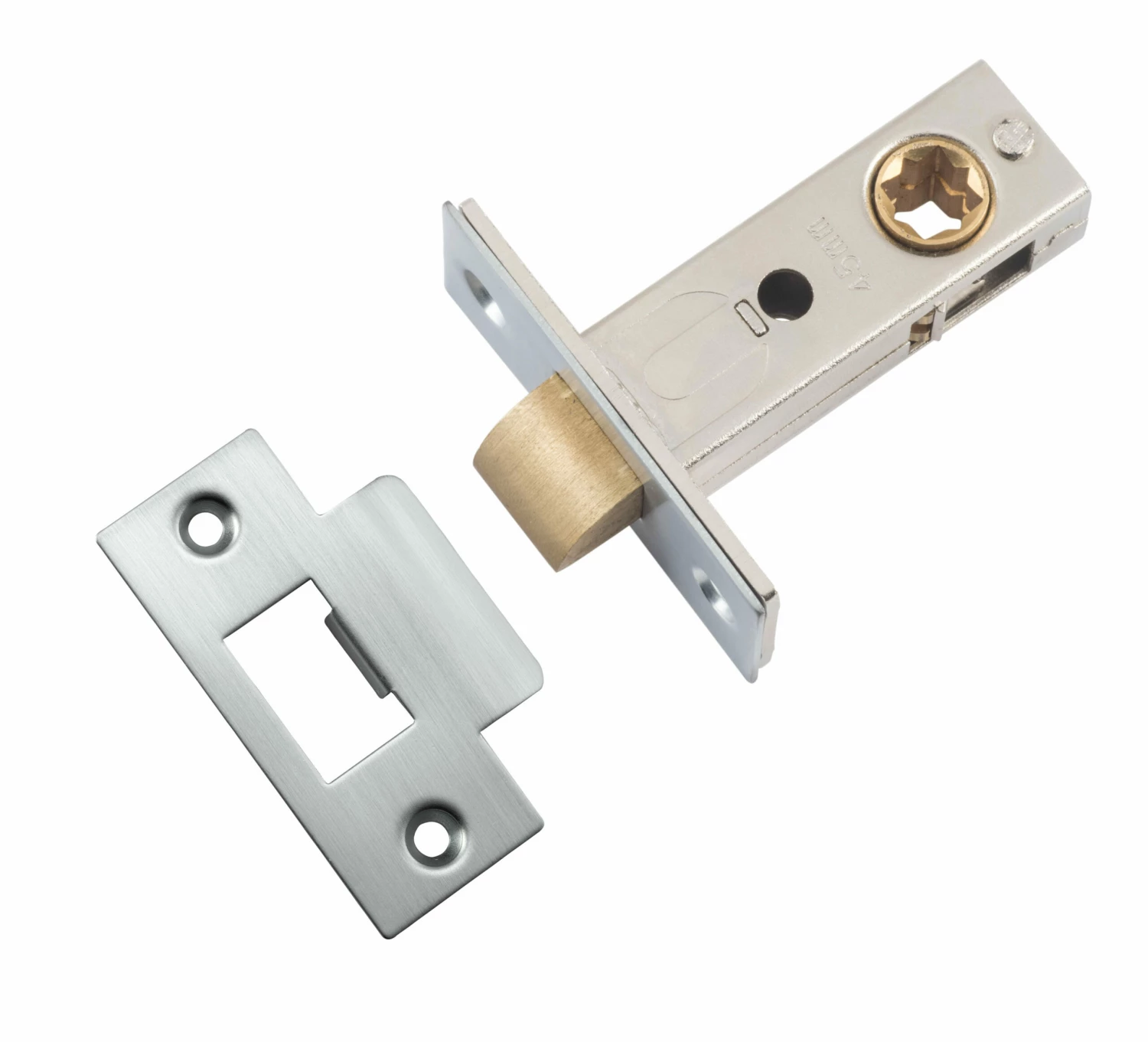Split cam tube latches featuring brass face plate and striker. Available in 3 different size backsets.