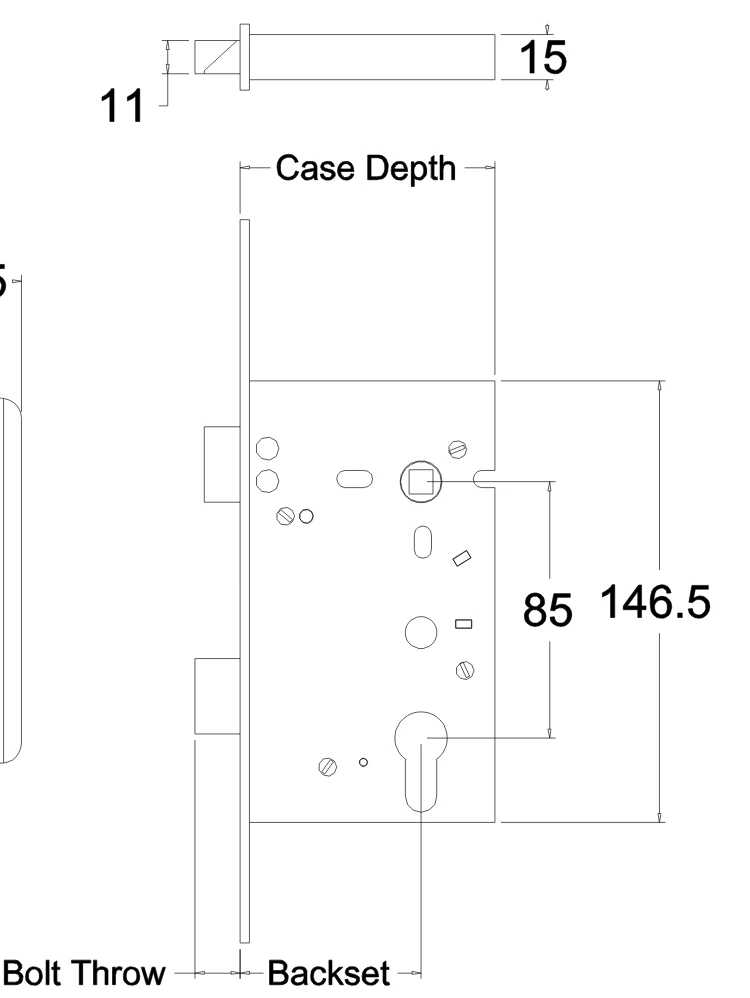The long body cylinder lock with cylinder latch retract and the option of a stronger spring for extra heavy unsprung furniture. The locking bolt has hardened rollers. This lock replaces the old long body locks. Double Sprung as standard.