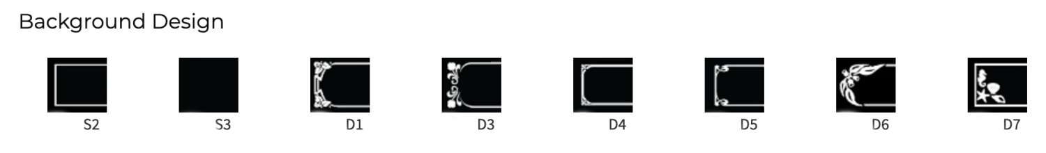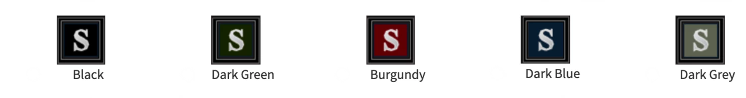 | Background Colour | Black, Dark Green, Burgundy, Dark Blue, Dark Grey |