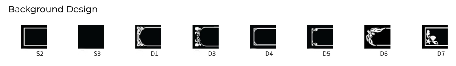 | Background Colour | Black, Dark Green, Burgundy, Dark Blue, Dark Grey |