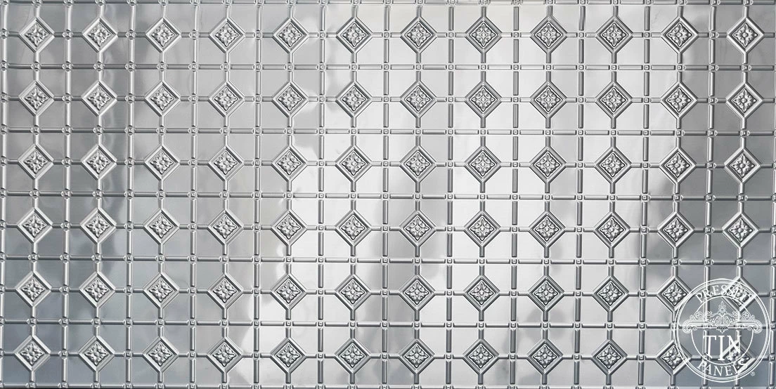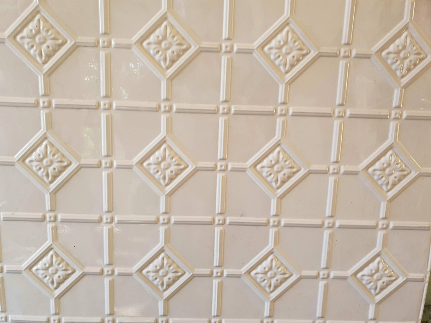 The Mudgee design is very simplistic, featuring a diamond centre and square pattern repeat that is extremely popular as a tile alternative in both kitchens and bathroom’s. The Mudgee design was reproduced by Pressed Tin Panels® for the Longrican Shopping Centre in Mudgee NSW. The Mudgee design is suitable for a wide range of wall or ceiling installations and can be painted or powder coated in a myriad of colours. Suggested usage includes: kitchen splash backs, bathroom tile alternatives, counter and bar fronts, feature walls and many more.