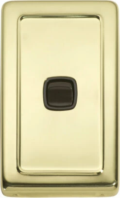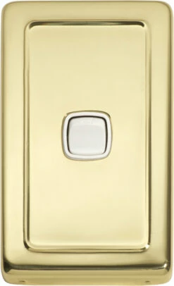 Flat plate 1Â gang rocker switches with brass covers and HPM mechanisms. Matching sockets and compatible accessories also available.