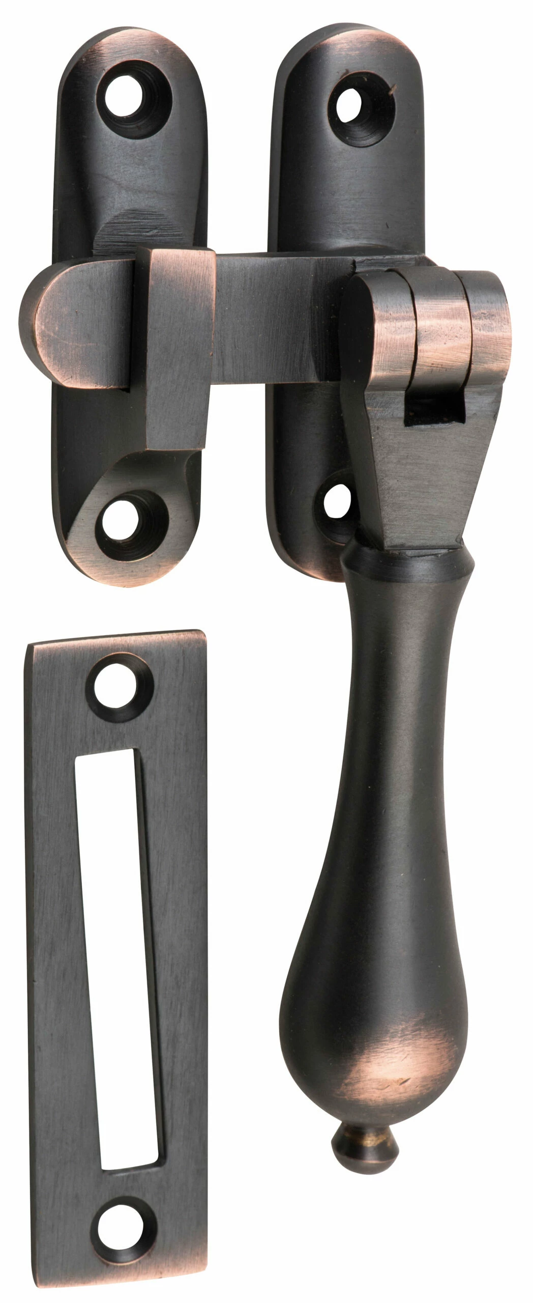 Solid brass teardrop casement fastener with extended tongue for long throw applications. Spacers are available separately.