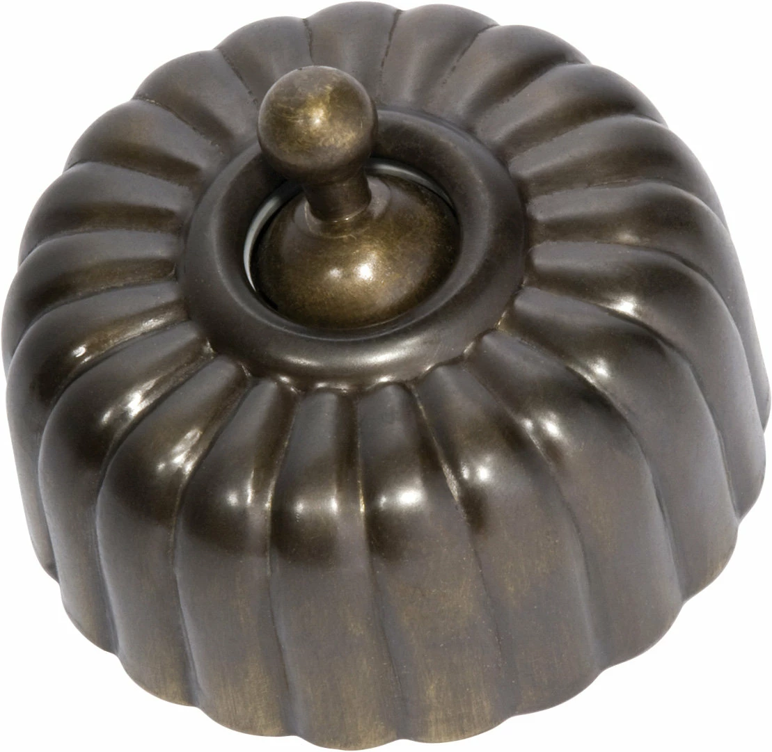 Fluted switches with brass covers and toggles. Matching dimmers, fan controllers and sockets also available.