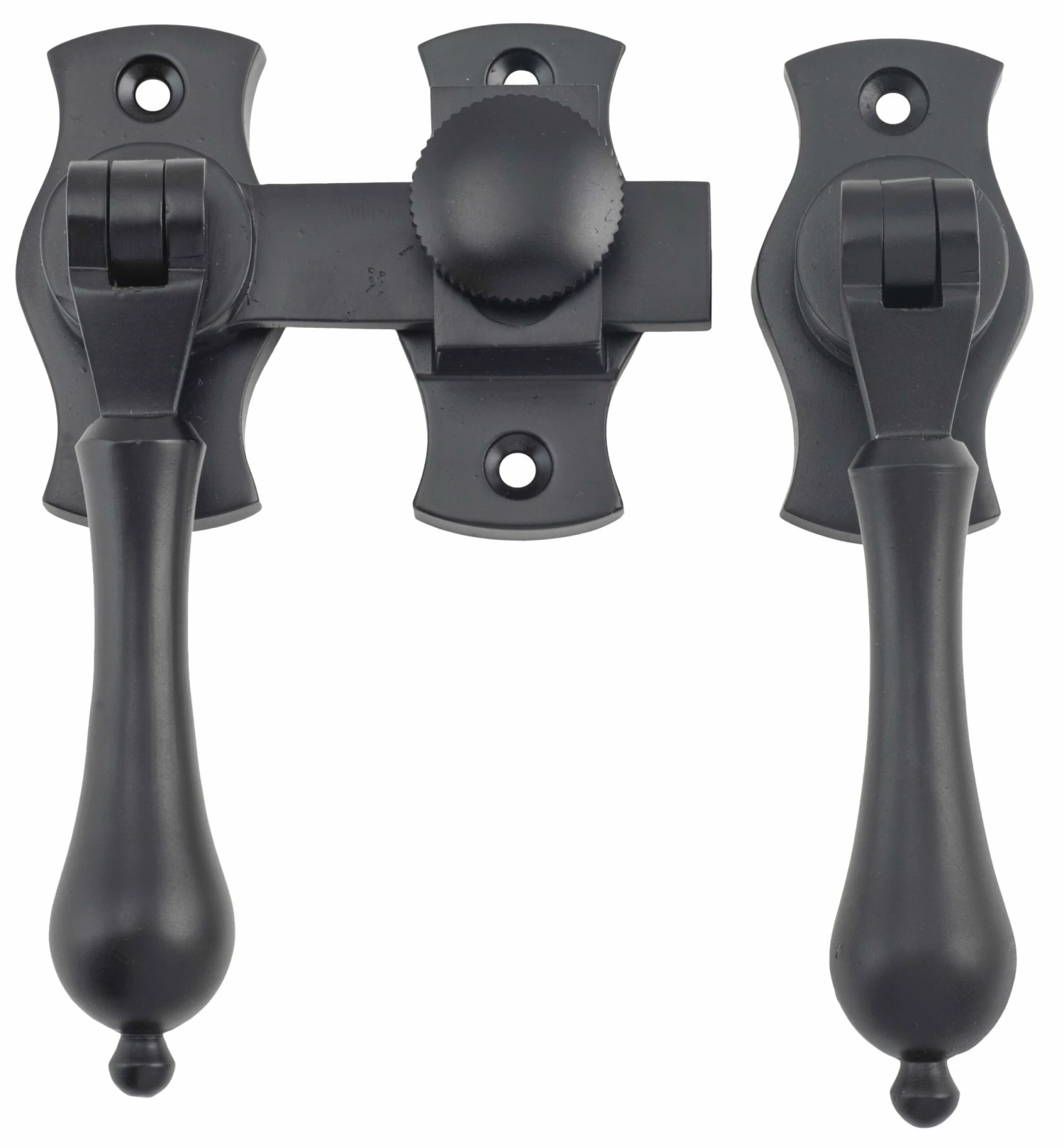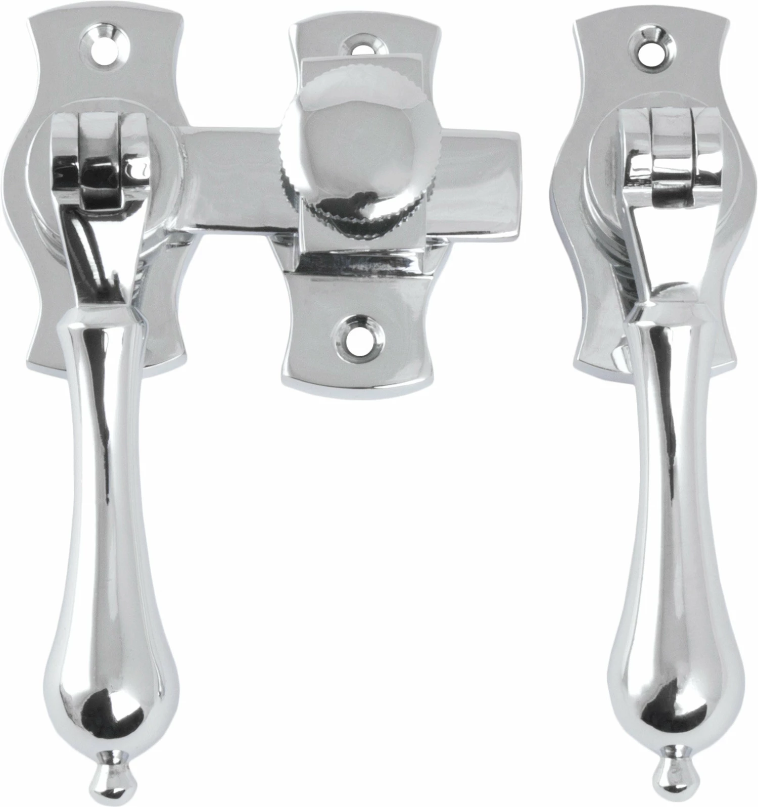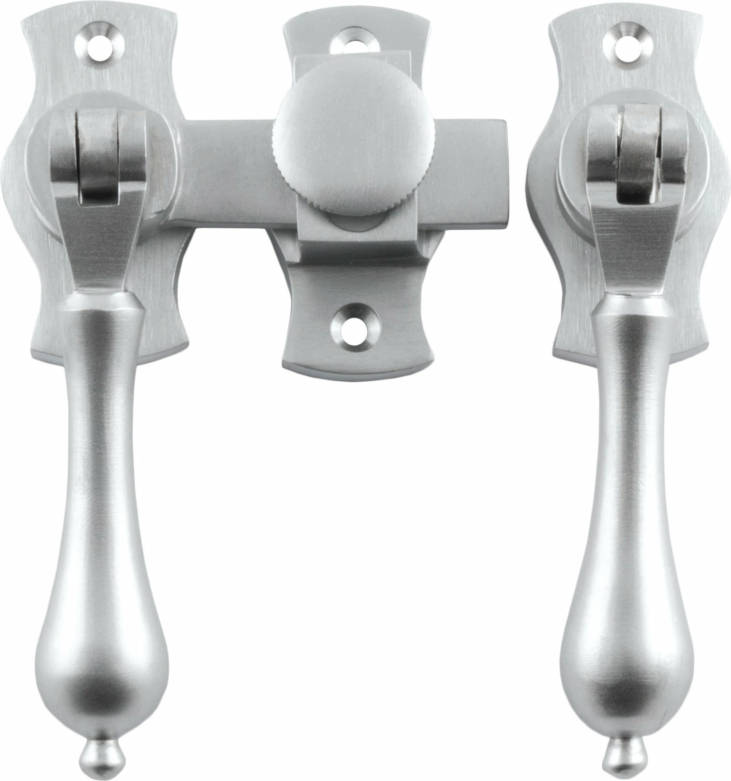 Teardrop French door fasteners with screw down catch.