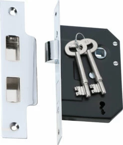 3 lever low security mortice lock for internal applications. Solid brass face and striker plates. Reversible tongues. Keyed alike or randomly keyed.