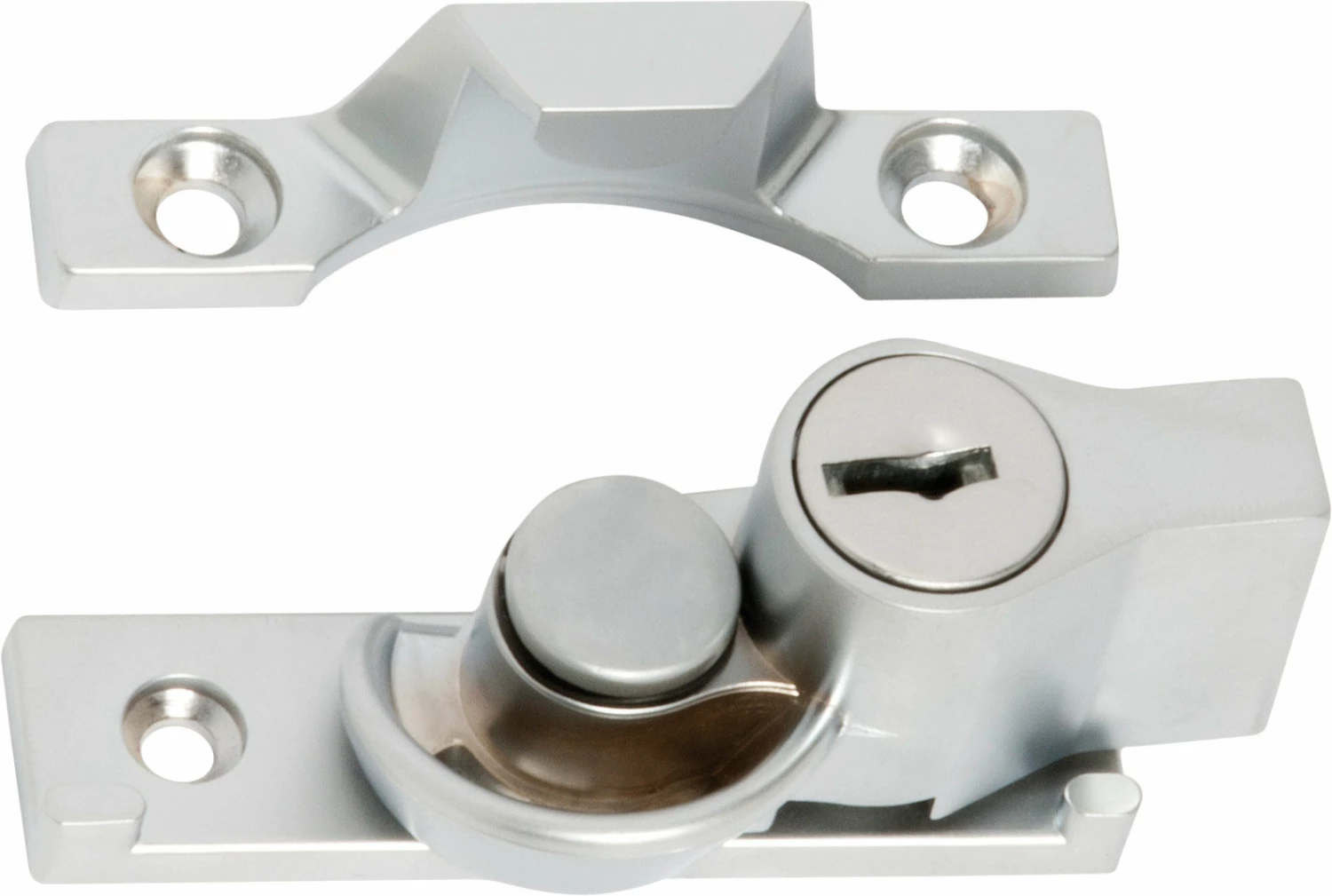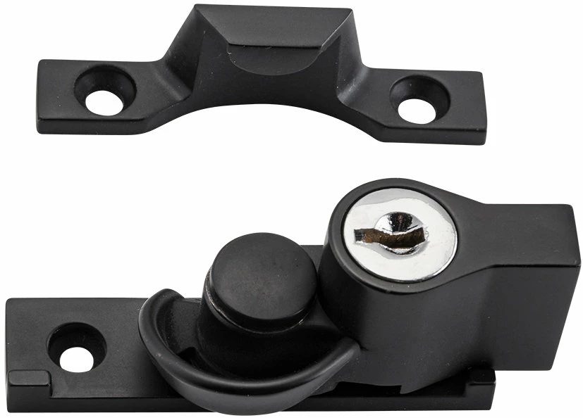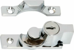 Key operated sash fasteners with narrow base and 12mm catch. Zinc alloy construction. Supplied with 2 keys.