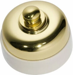 Traditional porcelain base LED dimmers with brass covers and knobs.