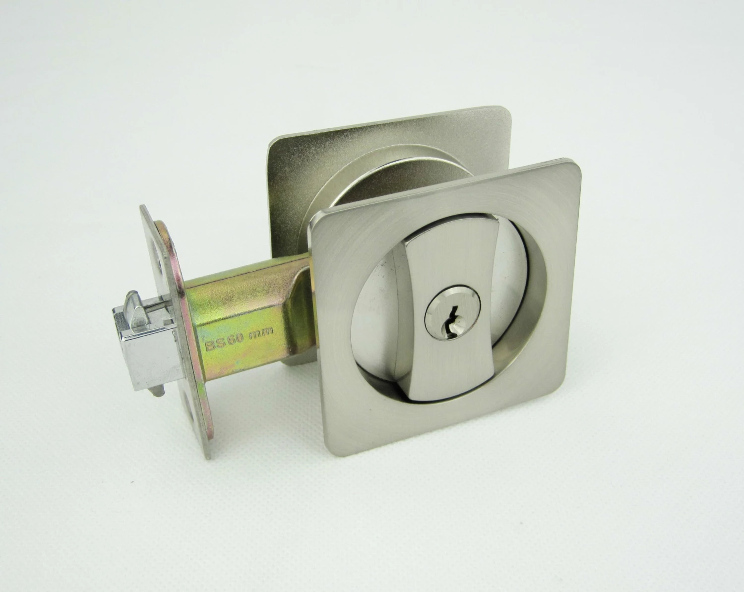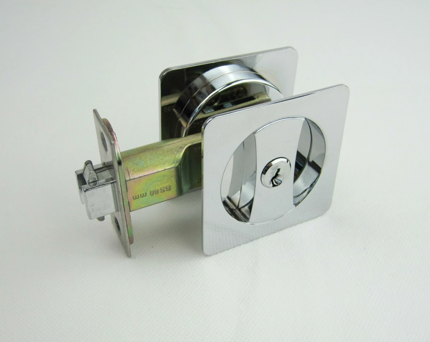 Comes as a complete kitwith a round finger edge pull to retrieve sliding doors from their cavities. Also includes two keys in the kit.