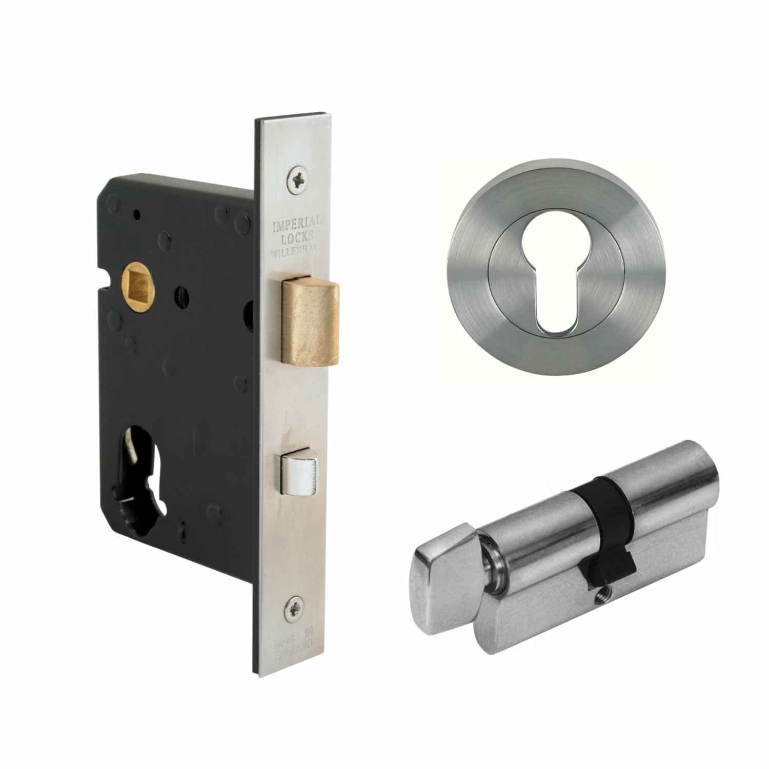 Comes as a full kit with a pair of escutcheons, a turnthumb euro cylinder & heavy duty night latch lock.